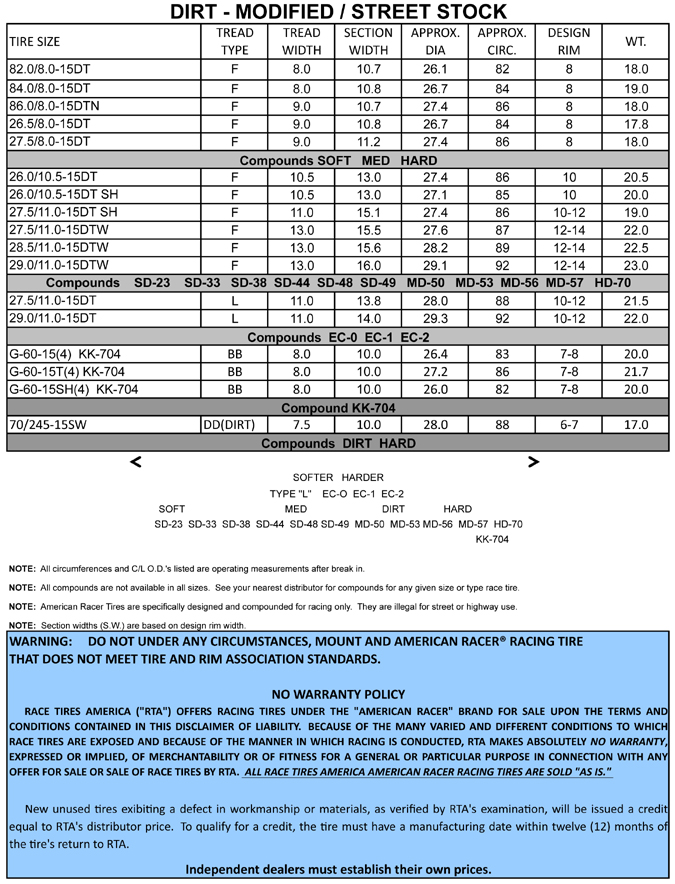 Street Stock Dirt racing tires. Multiple nights of racing provide